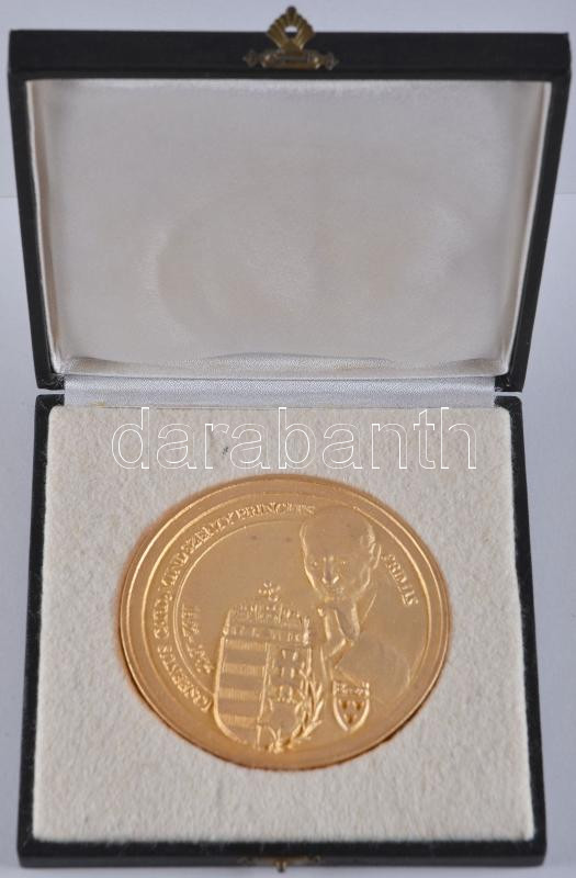 Bozó Gyula (1913-2004) 1975. Mindszenty bíboros emlékére aranyozott Br nagy MINTA érem (94mm) öntött, dísztokban "JOSEPHUS CARD.MINDSZENTY PRINCEPS PRIMAS 1892-1975 / SZABAD HAZÁD VÉGSŐ NYUGHELYEDRE VÁR" T:1- RR!