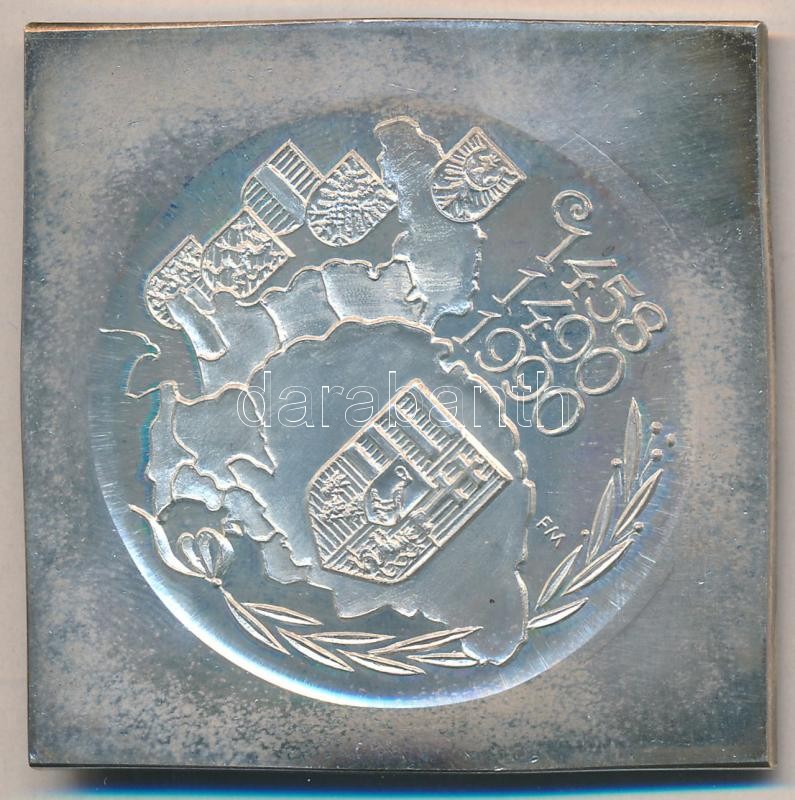 Fritz Mihály (1947-) / Szabó Géza (1939-) 1990. MÉE-Mátyás király halálának 500. évfordulója Ag csegely emlékérem (50,3g/0.900) T:PP Dísztokban