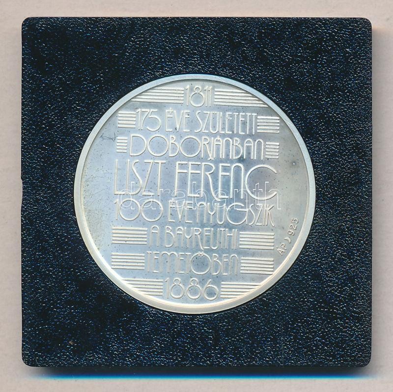 Fülöp Zoltán (1951-) 1986. "175 éve született Doborjánban Liszt Ferenc - 100 éve nyugszik a Bayreuthi temetőben" Ag emlékérem ÁP dísztokban és tanúsítvánnyal (12g/0.925/32mm) T:PP Csak 3000db!