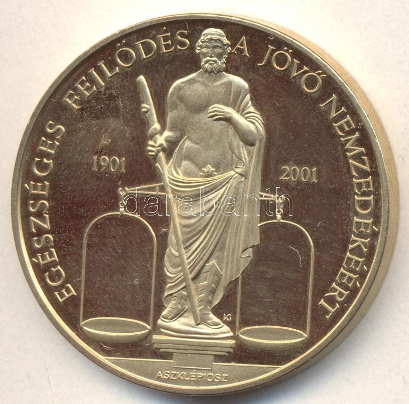 Kósa István (1953-)2001. Richter Gedeon centenárium "Egészséges fejlődés a jövő nemzedékéért" aranyozott ffém emlékérem (42,5mm) T:PP