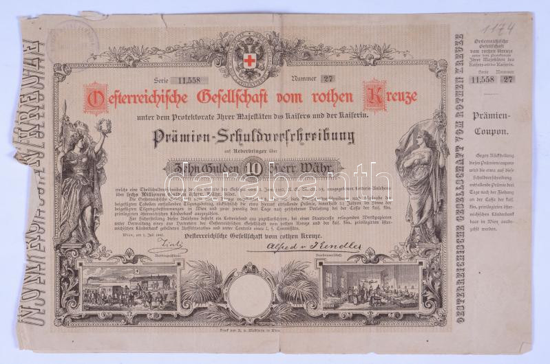 https://www.darabanth.com/en/178-Online-auction/178.0/Numismatics/Shares-and-Tickets~600142/Ausztria-1882-10-Gulden-erteku-Osztrak-Voroskereszt-kotveny-TIII-3Cbr3EAustria-1882-Austri~II627730