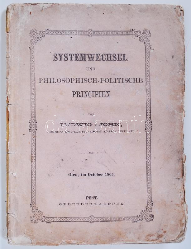 https://www.darabanth.com/en/178-Online-auction/178.0/Other-collectibles/Books-Science~600014/Ludwig-von-John-Systemwechsel-und-philosophisch-politische-Principien-Pest-1865-Gebruder-Lauffe~II629087