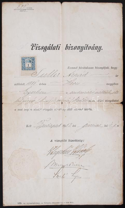 https://www.darabanth.com/en/178-Online-auction/178.0/Other-collectibles/Documents~600157/1913-Gogzepkezeloi-bizonyitvany-szarazpecsettel~II624672