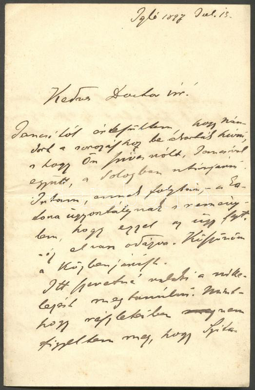 1897 Klug Nándor fiziológus professzor saját kézzel írt, Kedves Tanár Úr! kezdetű, valószínűleg Lyka Károlynak szóló levele. 3 beírt oldal