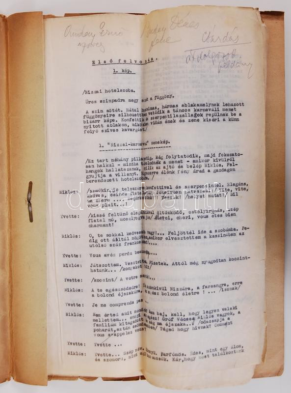 Anday Ernő - Buday Dénes: Csárdás. Zenés színmű 4 felvonásban Gépi kézirat. 70p.