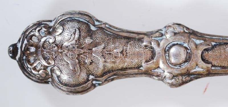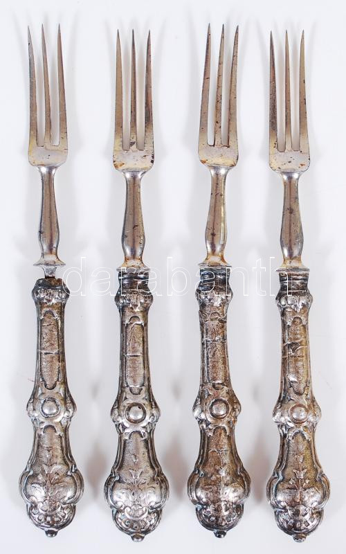 4 db ezüst (Ag.) nyelű süteményes villa, jelzettek, bruttó: 100 g, h:18 cm