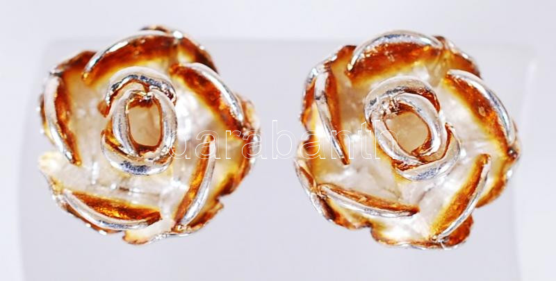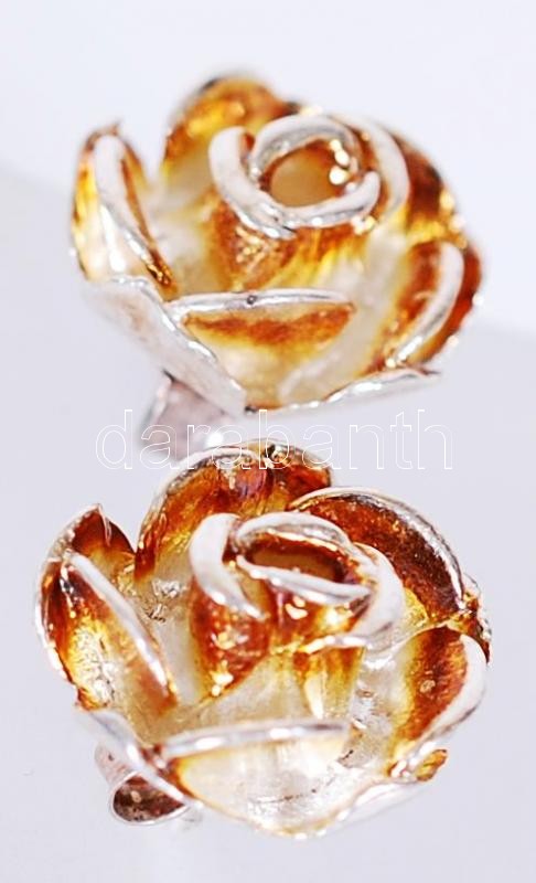 Rózsát ábrázoló, kézzel készült, ezüst (Ag) fülbevaló pár /