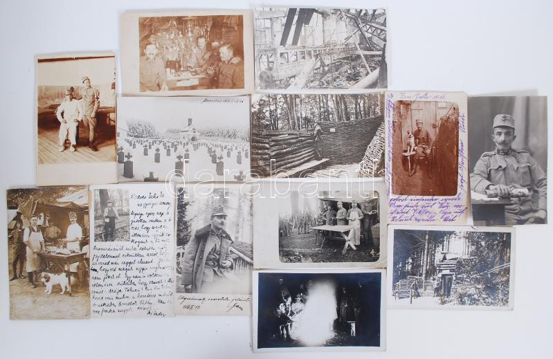 13 db katonai fotólap a frontról I. világháborús életképekkel / WW. I. military photocards