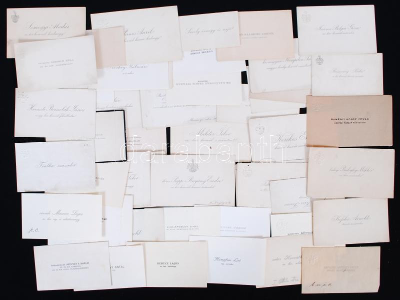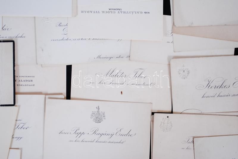 cca 1880-1930 51 db névjegy különböző katonáktól (tábornok, páncélos hadnagy, huszár, stb...) legtöbbön dombornyomott vagy nyomtatott családi címerrel