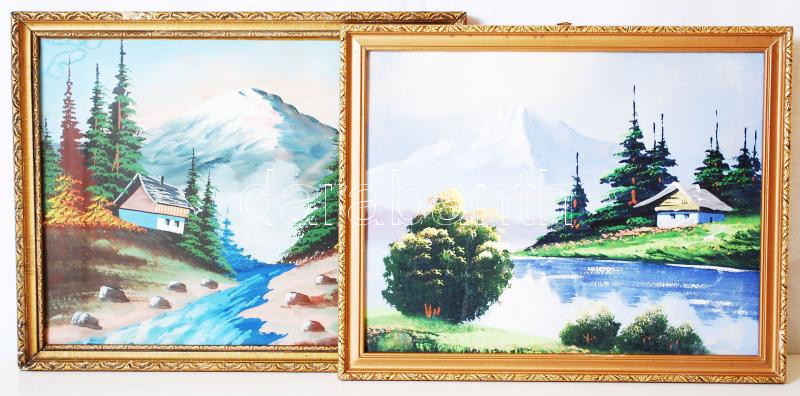 2 db jelzés nélkül: Tájkép. Tempera, papír, keretben 35×28 cm (2×)