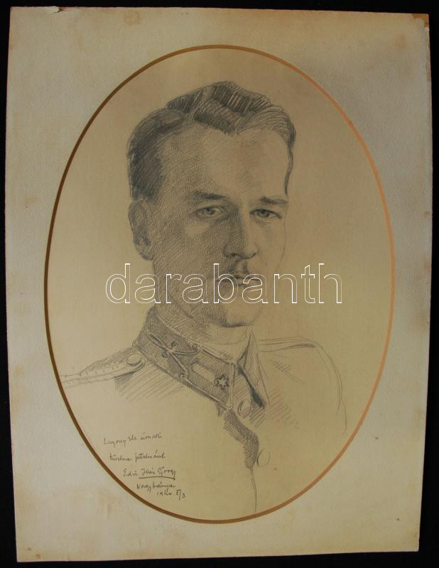 Edvi-Illés György (1911-?): Lugossy zászlós. Ceruza, papír, jelzett, p...