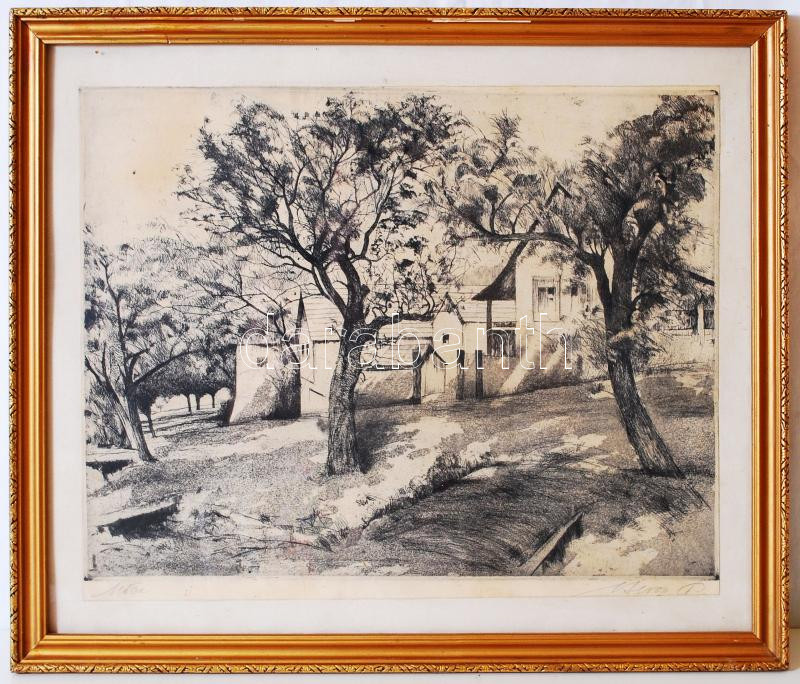Olvashatatlan jelzéssel: Házak. Rézkarc, papír, üvegezett keretben 39×...