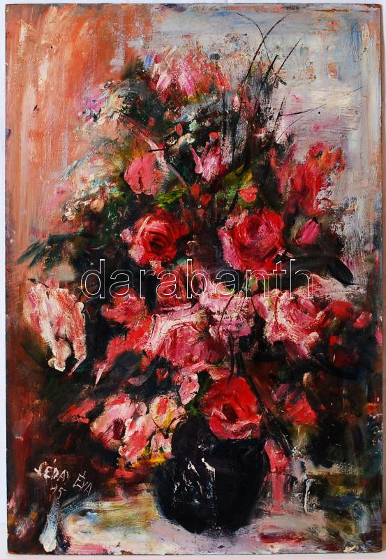 Séday Éva (1929-2011): Virágcsendélet. Olaj, farost, jelzett, 50×35 cm