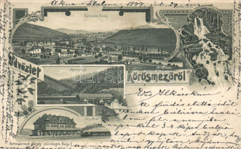 Kőrösmező Aspineci-gát, Trufanec vízesés, vasútállomás / railway station litho