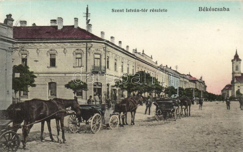 Békéscsaba Szent István tér, lovasfogatok (Rb)