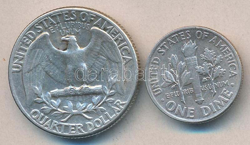 Amerikai Egyesült Államok 1961. 1/4$ Ag "Washington" + 1962. 1D Ag T:2...
