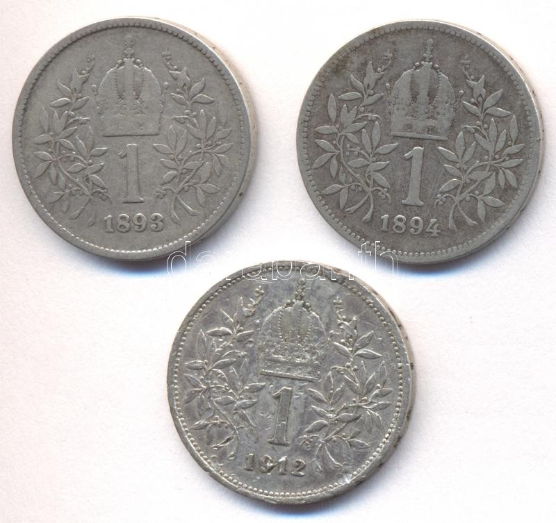 Ausztria 1893-1912. 1K Ag (3xklf) T:Vegyes