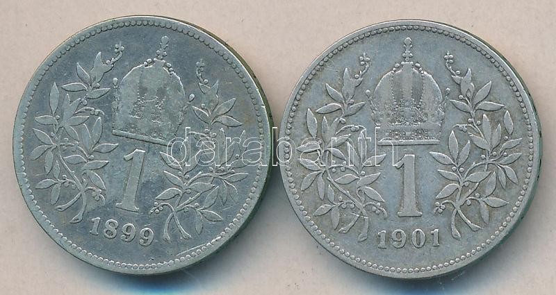Austria 1899/1901. 1 Corona Ag (2x) C:VF,F