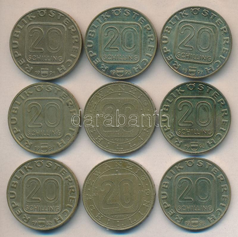 https://www.darabanth.com/en/179-Online-auction/179.0/Numismatics/Foreign-coins~300013/Ausztria-1980-1995-20Sch-9x-7klf-motivummal-emlekpenzek-T2-3Cbr3EAustria-1980-1995-20-Schilli~II631423
