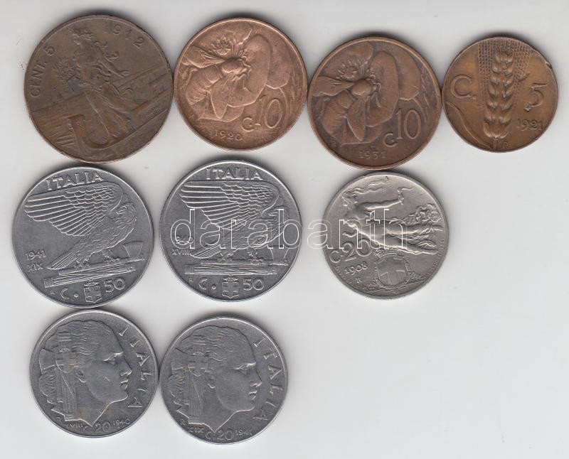 https://www.darabanth.com/en/179-Online-auction/179.0/Numismatics/Foreign-coins~300013/Olaszorszag-1908-1941-5c--50c-9db-kulonfele-T2-2--3Cbr3EItaly-1908-1941-5-centesimi--50-cent~II624272