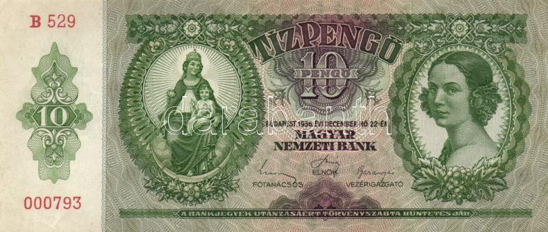 1936. 10P (10x) egymás utáni sorszámmal T:I,I-,II(hajtatlanok, 2db-on írás)