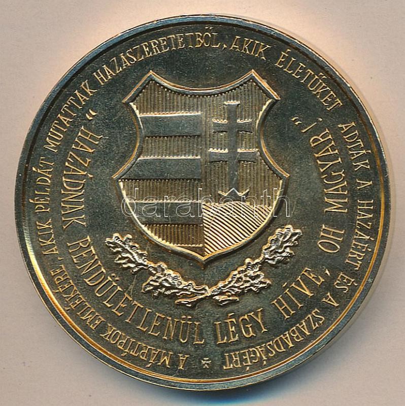 1989. "A száműzetésben 1960-1989 között működő szabad magyar kormány emlékére" nagyméretű piefort aranyozott emlékérem (65mm) T:PP