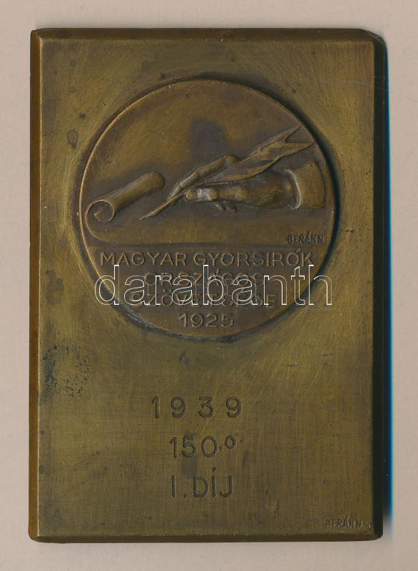 https://www.darabanth.com/en/179-Online-auction/179.0/Numismatics/Hungarian-commemorative-medals~300010/Beran-Nandor-1889-1965-1939-Magyar-Gyorsirok-Orszagos-Szovetsege-1925-Br-plakett-83x58m~II621208