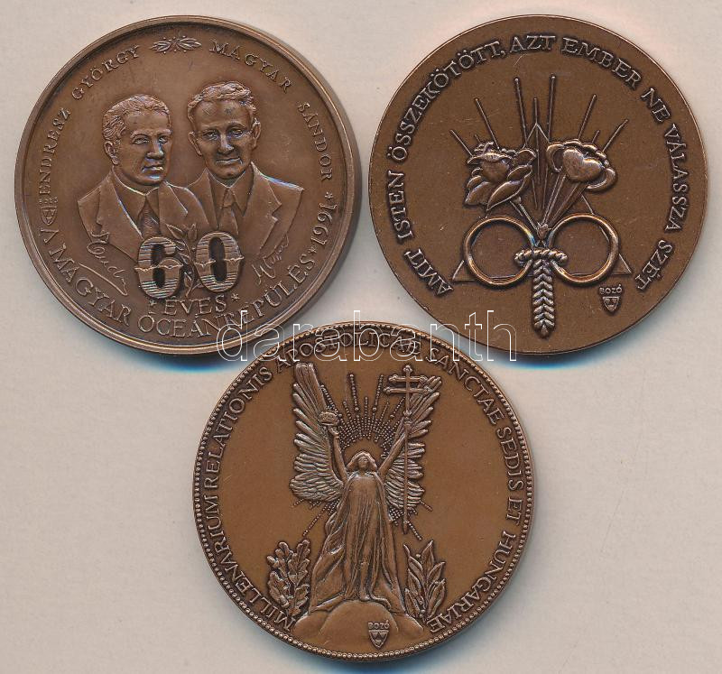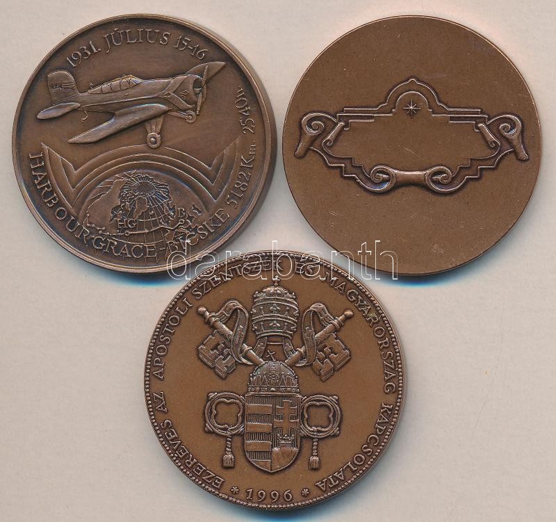 Bozó Gyula (1913-2004) 1991. "60 éves a magyar óceánrepülés - Endresz Gy.-Magyar S." Br emlékérem (42,5mm) T:1 + 1996. "Ezeréves az apostoli Szentszék és Magyarország Kapcsolata" Br emlékérem (42,5mm) T:PP + Házasságkötési Br emlékérem (42,5mm) T:2