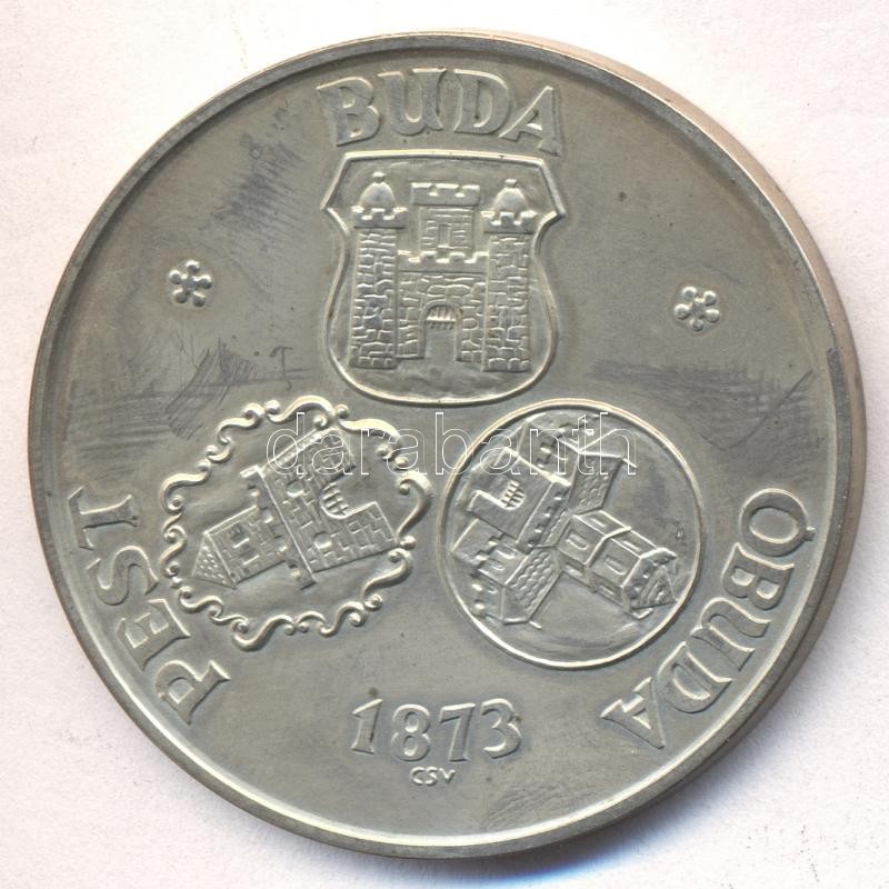 Csúcs Viktória (1934-) 1973. "Pest-Buda-Óbuda egyesítésének centenáriuma / ÁPV emléktallér" Ag emlékérem (25.35g/0.800) T:1-