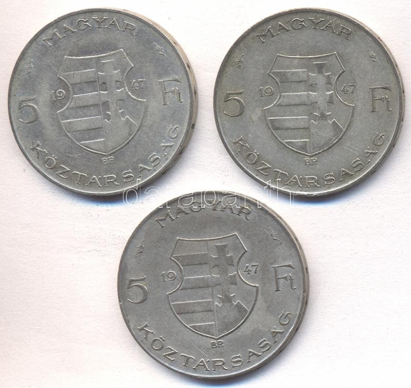 https://www.darabanth.com/en/179-Online-auction/179.0/Numismatics/Hungarian-metal-and-silver-coins~300009/1947-5Ft-Ag-Kossuth-3x-Tvegyes~II635701