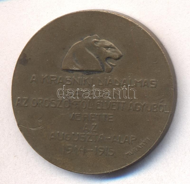 Murányi Gyula (1881-1920) 1915. "A Krasniki diadalmas csatában az oroszoktól elvett ágyúból verette az Auguszta-Alap" Br emlékérem (21mm) T:2-