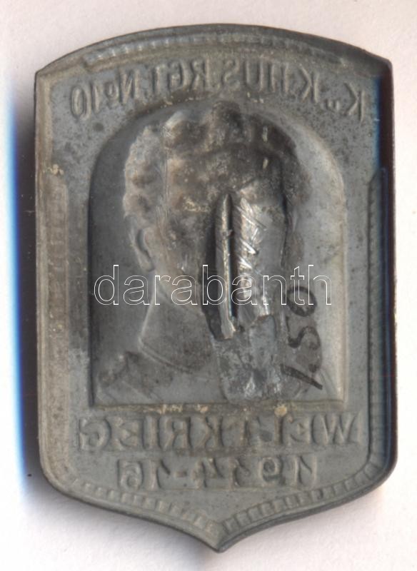Description: Osztrák-Magyar Monarchia 1914-1916. "K.u.K. 10. Huszárezred" Mackensen vezértábornagy portréjával horgany sapkajelvény (39x26mm) tű nélkül T:1-