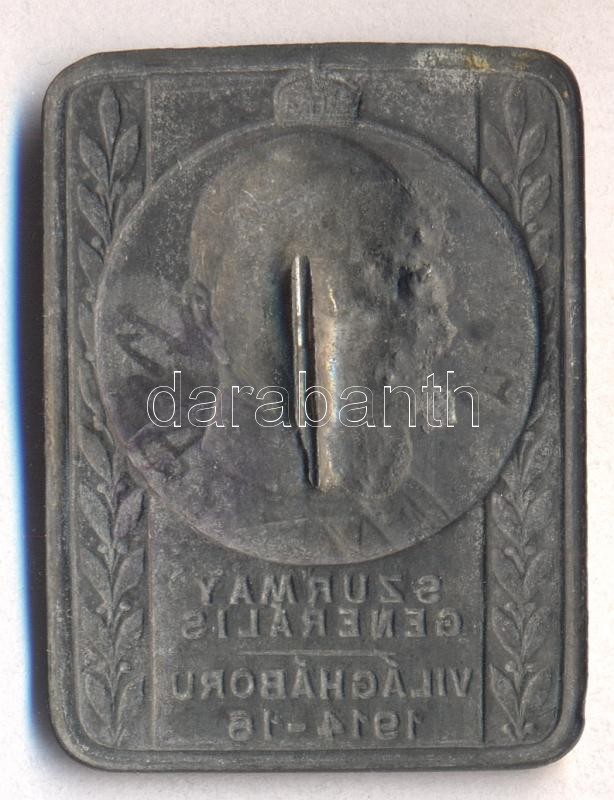 Osztrák-Magyar Monarchia 1914-1916. "Szurmay Generális - Világháború" horgany sapkajelvény (40x30mm) tű nélkül T:2