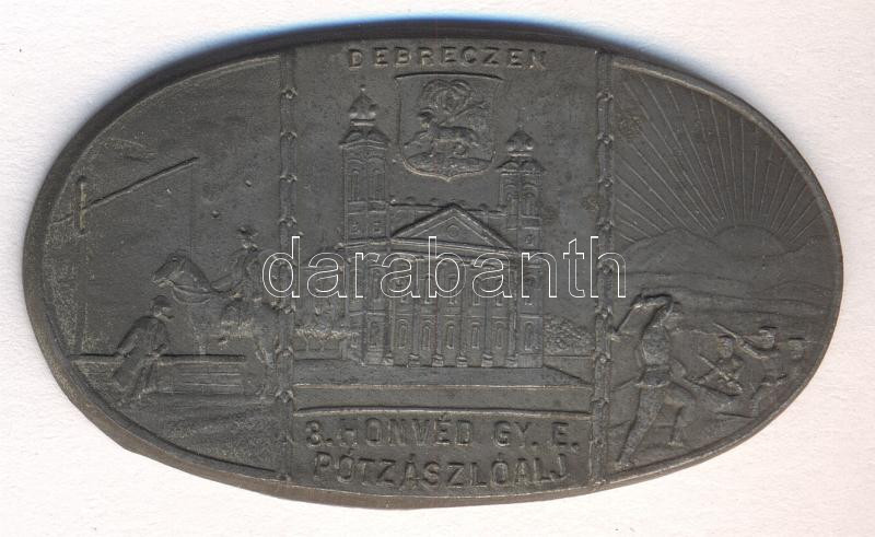 Osztrák-Magyar Monarchia 1914-1918. "3. Honvéd Gyalogezred Pótzászlóalj Debreczen" horgany ovális sapkajelvény (31x54mm), készítő: ARKANZAS BUDA PEST, tű nélkül T:2