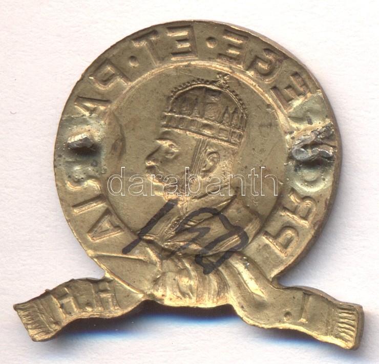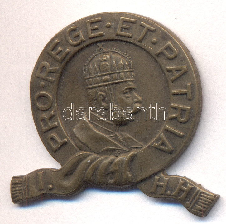 Austro-Hungarian Monarchy 1914- "I. H.H. PRO REGE ET PATRIA" gilt tombac cap badge (26x29mm) without pin C:XF