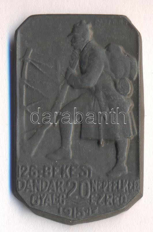 Austro-Hungarian Monarchy 1915-1917. "26. Békési Dandár 20. Territorial Infantry Regiment" zin cap badge (47x29mm) sign.: Pásztor , without pin C:VF