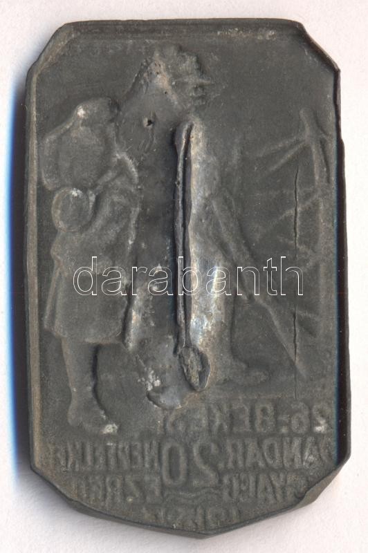 Osztrák-Magyar Monarchia 1915-1917. "26. Békési Dandár 20. Népfelkelő Gyalogezred" cink sapkajelvény (47x29mm) szign.: Pásztor, tű nélkül T:2-