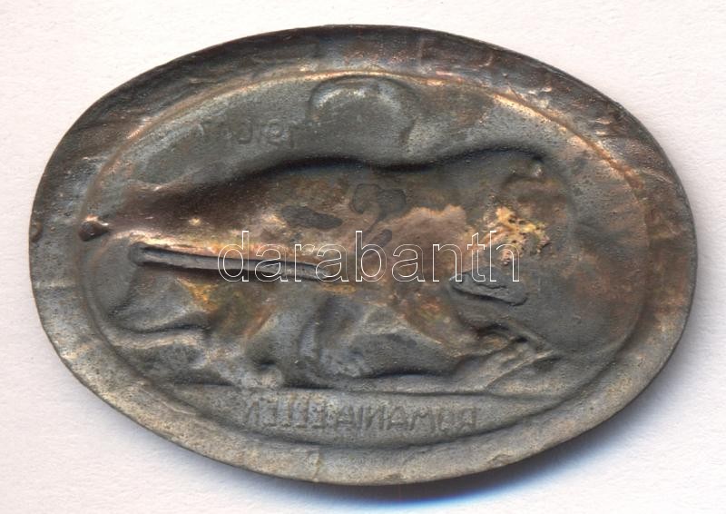 Osztrák-Magyar Monarchia 1916-17. "Románia Ellen" cink sapkajelvény (31x45mm) készítő.: Arkanzas Gesch., tű nélkül T:2