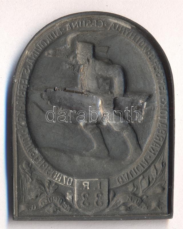 Description: Osztrák-Magyar Monarchia 1917-1918. "K.u.K. II. Lipót 33. Gyalogezred" cink sapkajelvény (47x37mm) szign.: Rubletzky, tű nélkül T:2