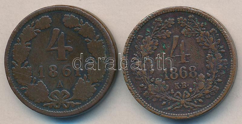 https://www.darabanth.com/en/179-Online-auction/179.0/Numismatics/Mixed-banknote-and-coin-lots~300019/1868KB-4Kr-T3-plus-Ausztria-1861A-4Kr-T3-3Cbr3EHungary-1868Kb-4-Kreuzer-plus-Austria-1861A-4-Kreuzer-CF-~II633373