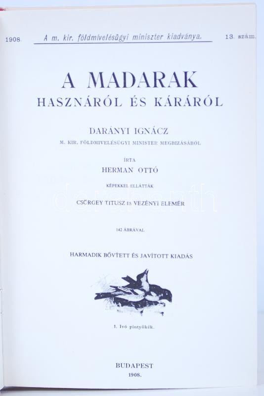 Herman Ottó: A madarak hasznáról és káráról. Budapest 1908. Állami Kön...