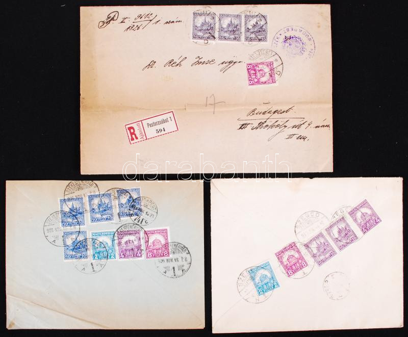Cca 1920-1930 3 db ajánlott levél ügyvédeknek, okmánybélyegekkel