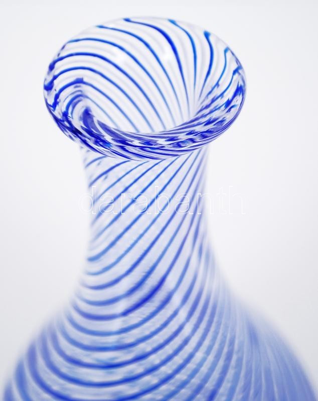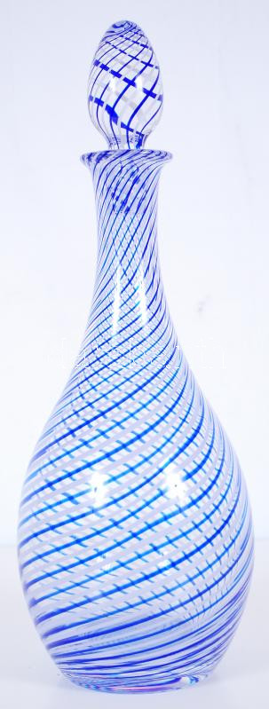 Kristály boros kiöntő, csavarodó kék-fehér szalag díszítéssel, hibátla...