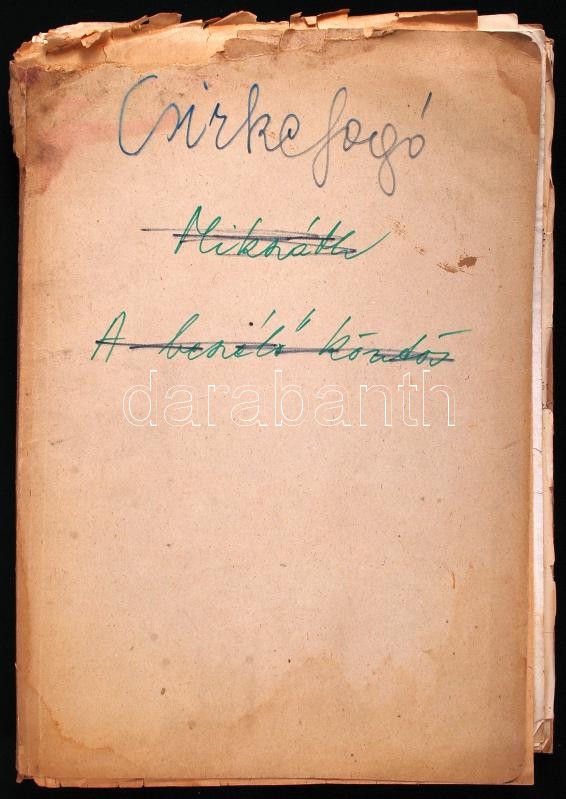 Csurka István (1934-2012) egy novellájának autográf kézirata 60 lapon egy-két gépelt oldallal. A szöveg feltehetőleg a Nász és pofon című korai novellájának egy publikálatlan változata (a mappa címe: Csirkefogó)