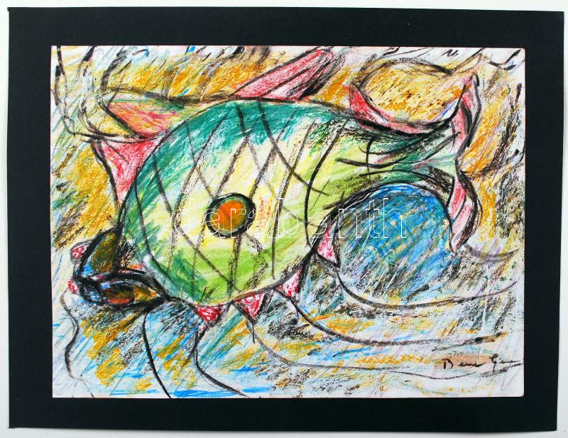 Bene jelzéssel: Hal. Vegyes technika, papír, 17×23 cm
