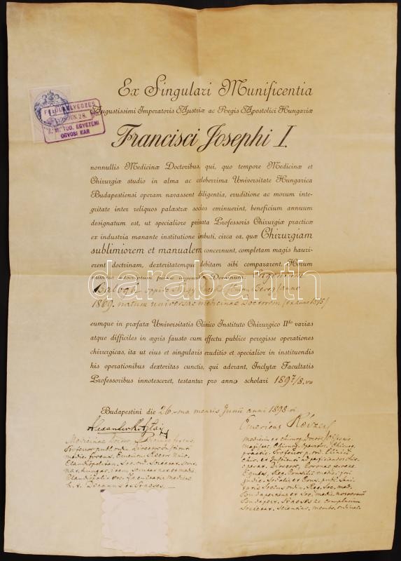 1887-1917 Egy katonaorvos pályafutása okmányokon. Egyetemi beiktató ok... https://www.darabanth.com/en/18-Major-auction/18.1/Art-and-collectibles/Documents~5914/1887-1917-Egy-katonaorvos-palyafutasa-okmanyokon-Egyetemi-beiktato-okmanya-vizsgaokmanya-ma~II852630