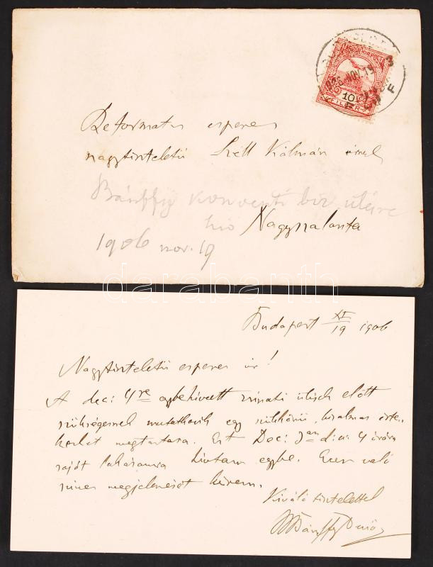 https://www.darabanth.com/en/18-Major-auction/18.1/Art-and-collectibles/Historical-documents-manuscripts~6143/1906-Banffy-Deszo-miniszterelnok-sajat-kezzel-irt-levele-Szell-Kalman-nagyszalontai-esperes~II821016
