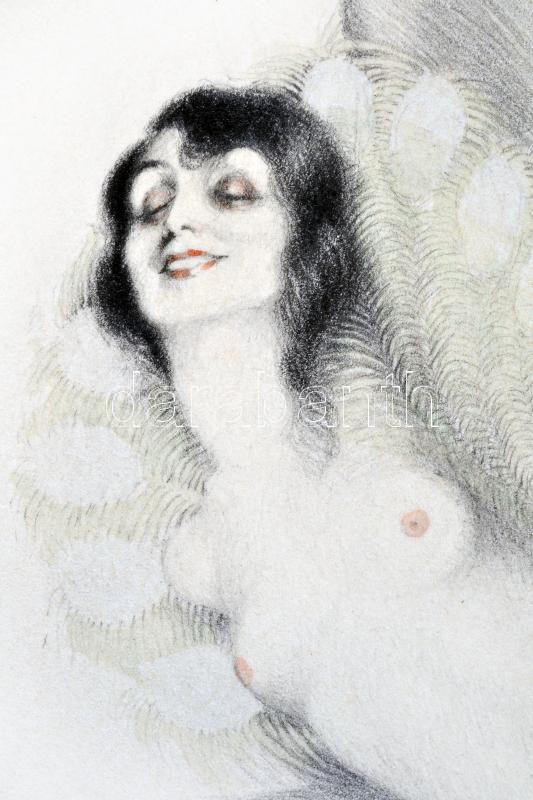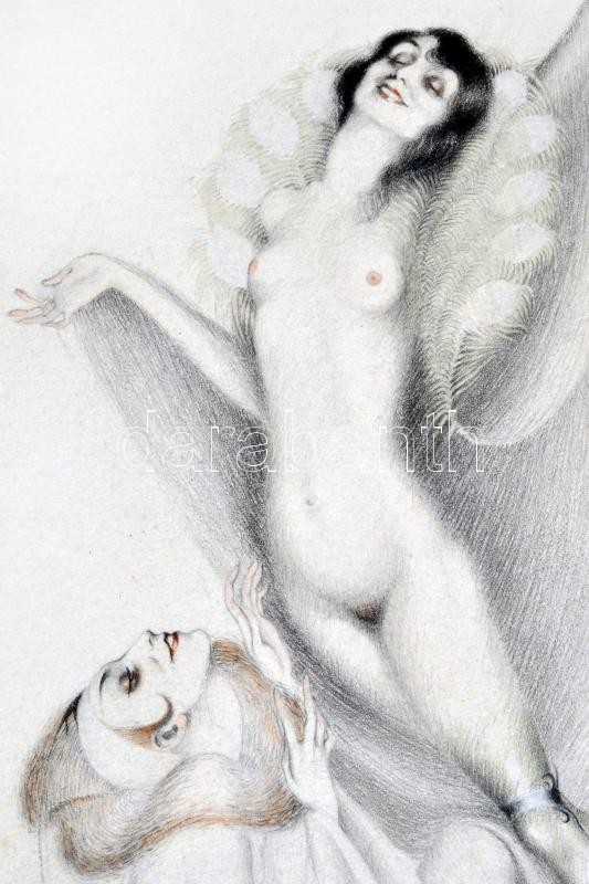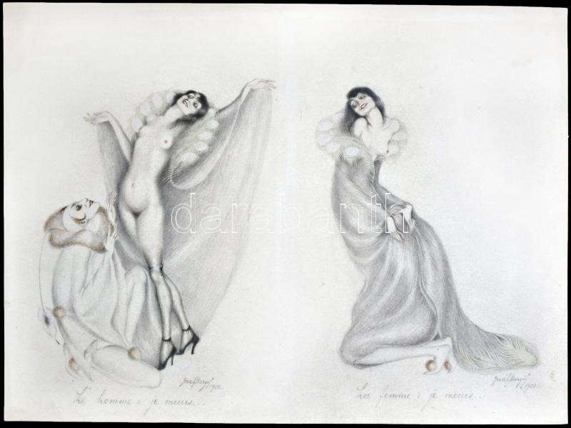 Gaál Margit (1898-?): L'homme:je meurs, La femme:je meurs. Vegyes technika, papír, jelzett, 24×32 cm