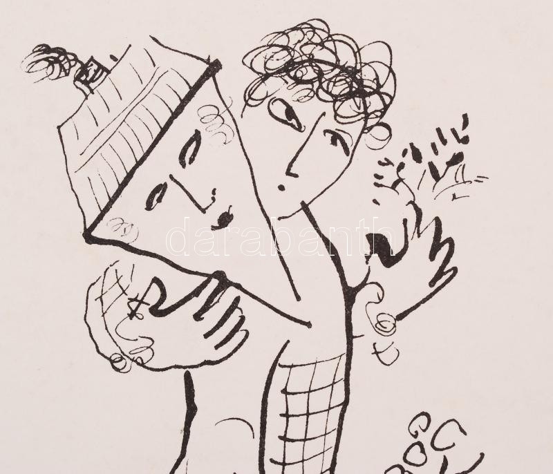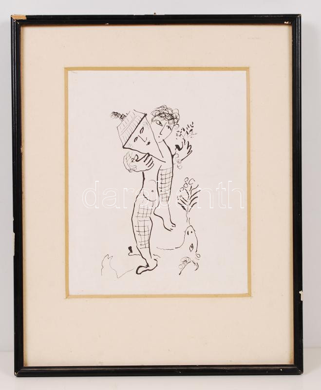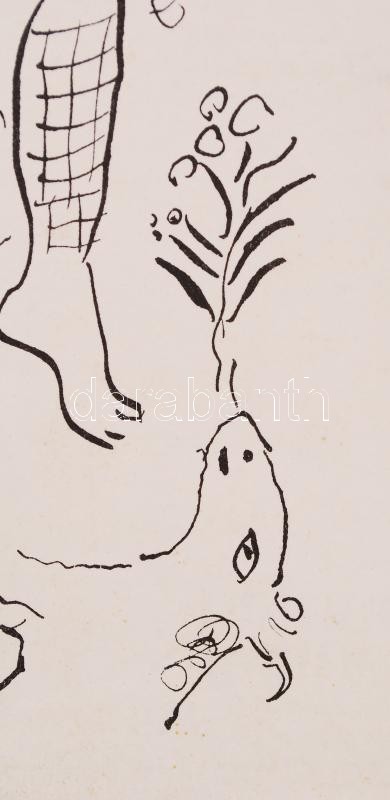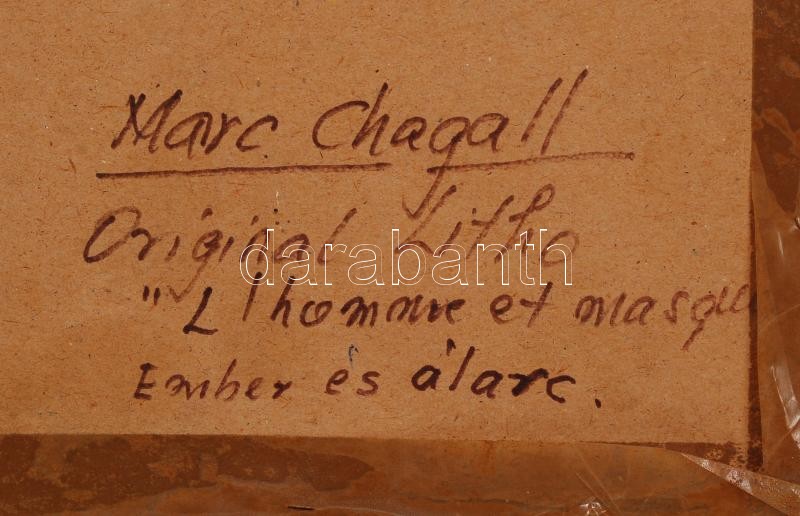 Marc Chagall (1887-1985): L' homme et masque. Litográfia, papír, jelzés nélkül, hátán bírálati szám:71/985, 26×21 cm
