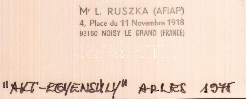1975 Ruszka László (1936-): Akt-egyensúly, Arles, 1975, feliratozott, ... https://www.darabanth.com/en/18-Major-auction/18.1/Art-and-collectibles/Photo~5924/1975-Ruszka-Laszlo-1936-Akt-egyensuly-Arles-1975-feliratozott-pecsettel-jelzett-vintage-~II854253